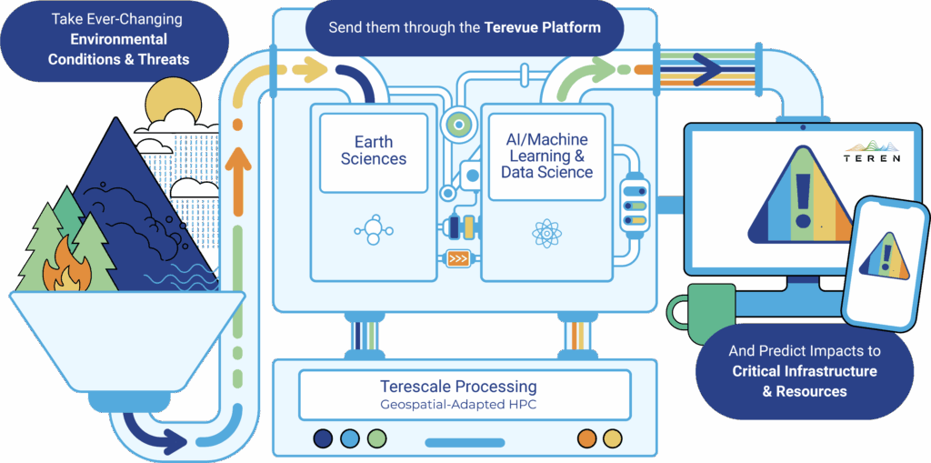 Teren’s Platform combines Terescale processing and predictive analytics to derive environmental intelligence at speed and scale from LiDAR data harmonized with other remotely sensed datasets. By harnessing powerful cloud processing, large-scale deep learning, and remotely-sensed data, we deliver high-fidelity, actionable intelligence for anticipating, measuring, and improving the outcomes of human-environment interactions.