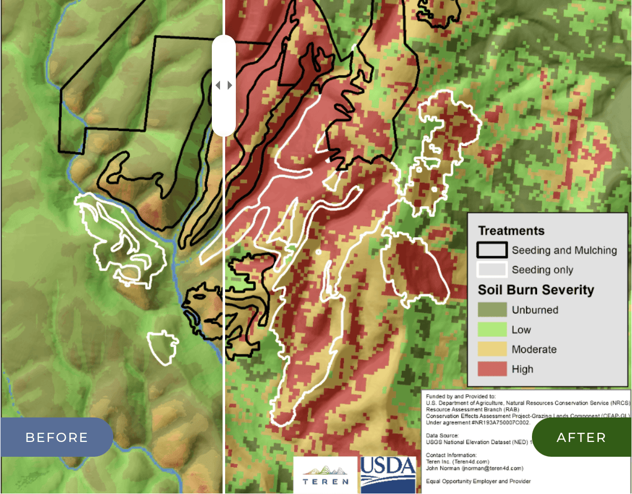 Teren Inc.’s spatial analysis tools have been pivotal in New Mexico’s wildfire recovery efforts. Using a 2-phase approach, high-resolution data and advanced modeling techniques, Teren has enabled a more precise, cost-effective, and efficient approach to rebuilding communities and restoring natural resources.